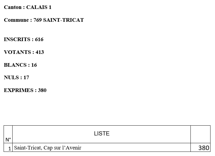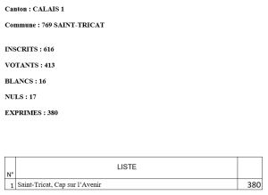 Voici les résultats des Élections Municipales pour la commune de Saint-Tricat :