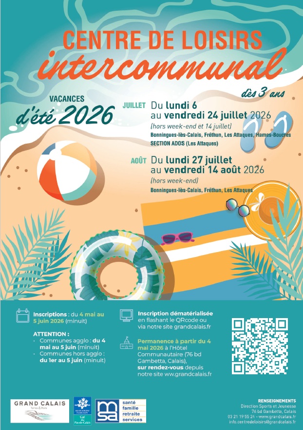 Le centre de loisirs intercommunal de Grand Calais Terres & Mers accueille vos enfants de 3 à 15 ans pour un été riche en activités ludiques, culturelles et sportives.